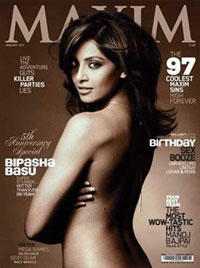 Bipasha Basu's stunt on Maxim magazine cover in trouble: Bollywood actress Bipasha Basu got lots of publicity for posing on the cover page of Maxim Magazine, but the same has put her in trouble. The latest news is that a local advocate has filled a complaint against her for obscenity. Advocate Nisar Mohammed filled a complaint against Bipasha in the magistrate's court in Bhopal, alleging that her picture in the Maxim magazine is vulgar and obscene. The advocate said that he came across the picture when he purchased the latest issue of the magazine.The case will be heard on February 15 by Chief Judicial Magistrate, R G Singh.